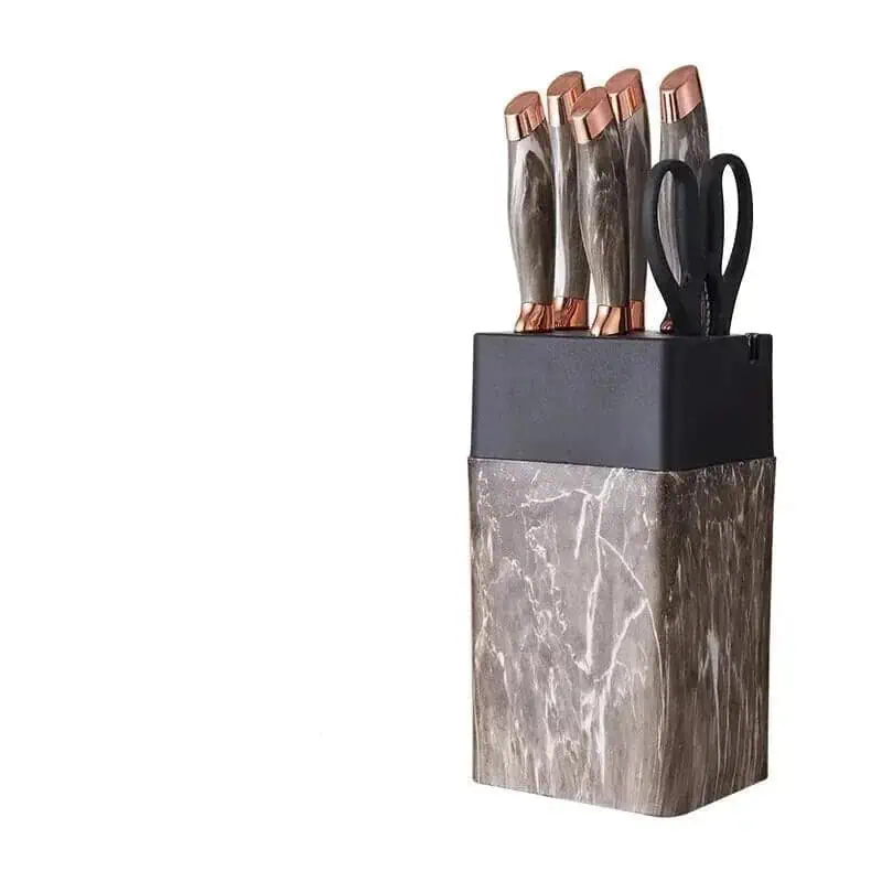 Mit dem Messerblock Braun erleben Sie eine neue Dimension von Ordnung und Hygiene in Ihrer Küche. Unser robust konzipierter Messerblock bietet Platz für alle Ihre Küchenmesser – groß oder klein, schmal oder breit. Seine speziell entworfenen Steckplätze gewährleisten eine sichere und fest sitzende Lagerung Ihrer Messer, sodass Sie immer schnell und bequem auf sie zugreifen können. Darüber hinaus ist der Messerblock Braun einfach zu reinigen und trägt so zur Hygiene und Sauberkeit Ihrer Küche bei. Er besteht aus hochwertigen Materialien, die ihm eine besondere Langlebigkeit und einen Hauch von Eleganz verleihen.