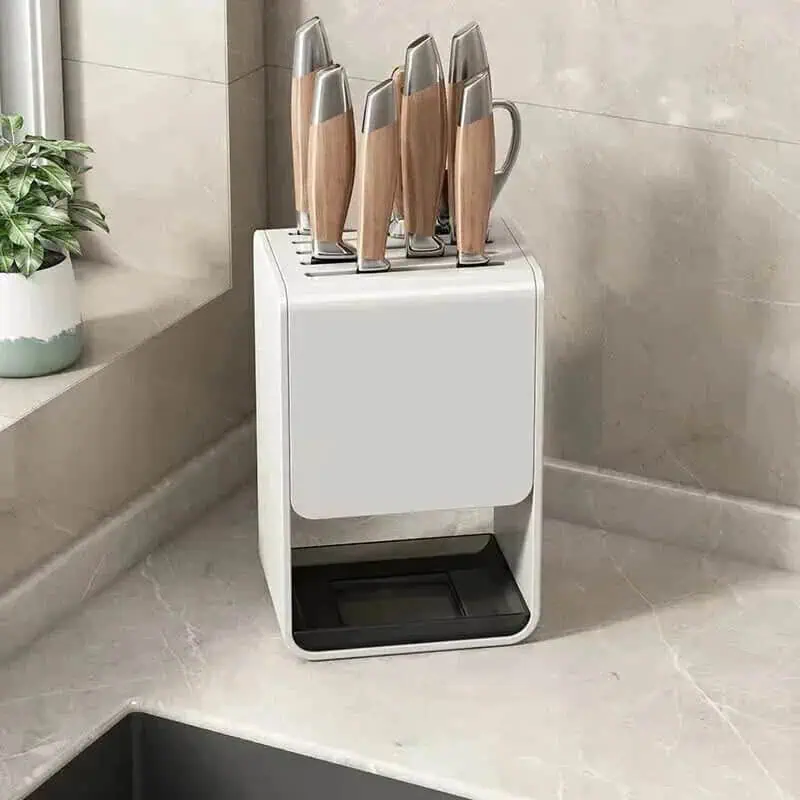 Führen Sie Ihre Küche in eine neue Dimension der Organisation und Sauberkeit. Der Universal-Messerblock bewahrt nicht nur Ihre Messer sicher auf, er bringt auch eine strukturierte Eleganz in Ihren Küchenbereich. Entdecken Sie das Gefühl kontrollierter Organisation mit diesem stilvollen Küchenhelfer.